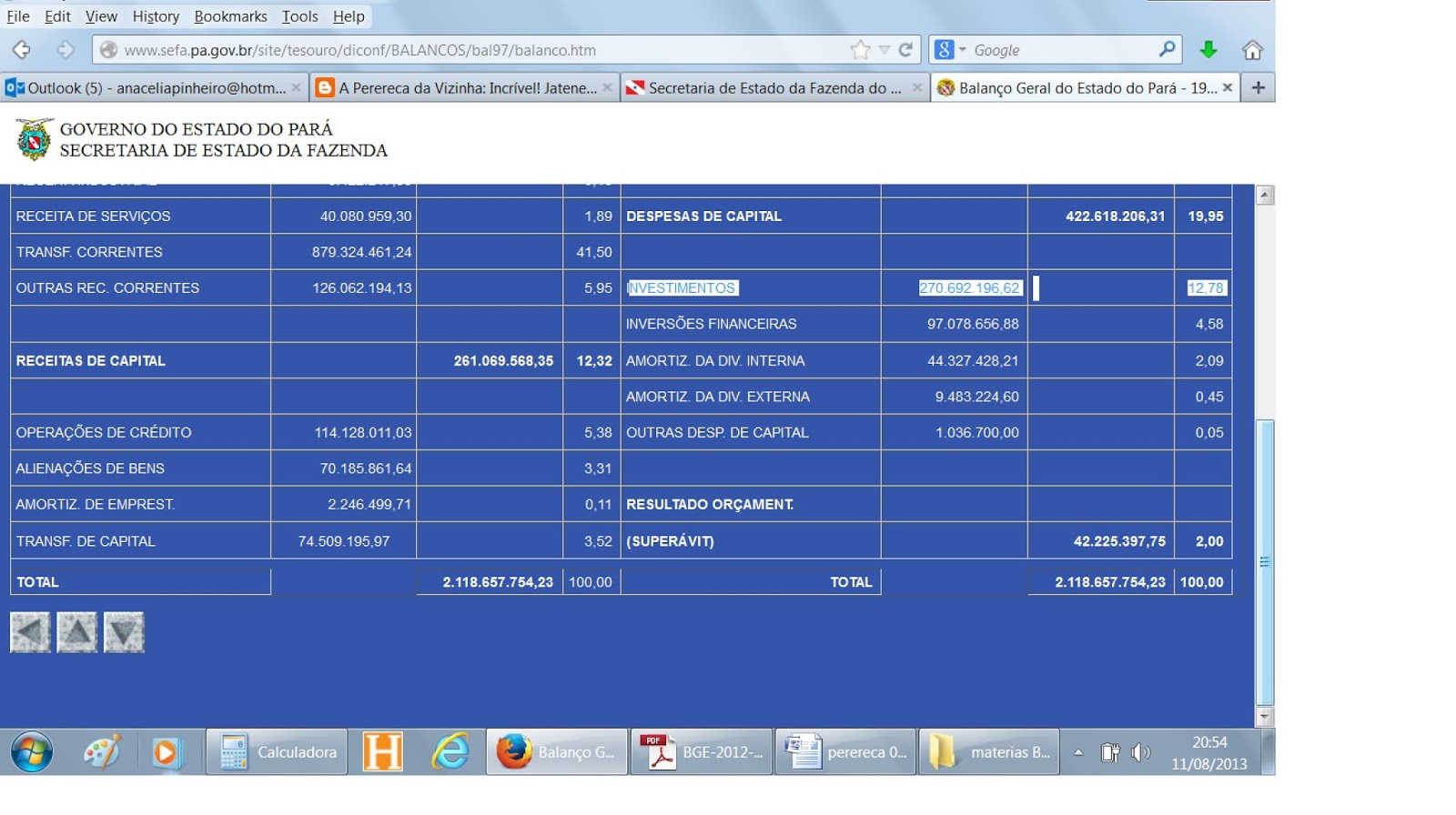 Aliás, no BGE de 2012, a Perereca ainda não conseguiu localizar a tabela comparativa dos percentuais de investimento ano a ano, que vinha sendo publicada pelos BGEs desde 2000.